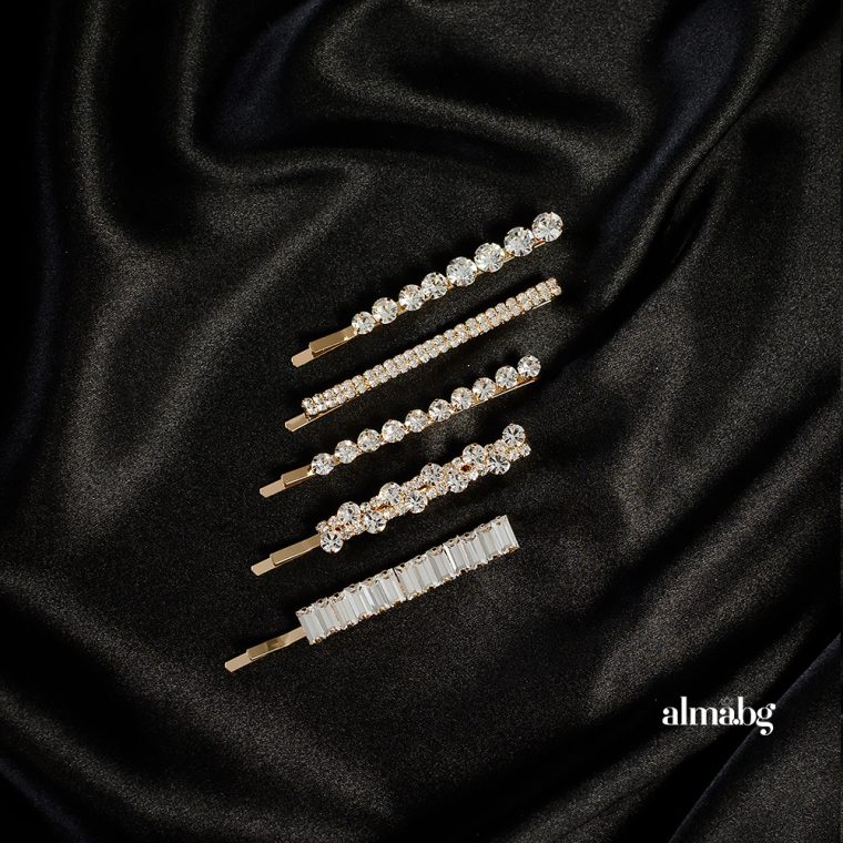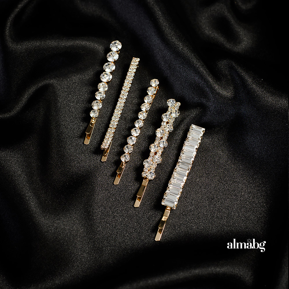 Комплект от 5 броя луксозни фиби с блясък – бижу за коса. Супер стилен и красив аксесоар за коса.