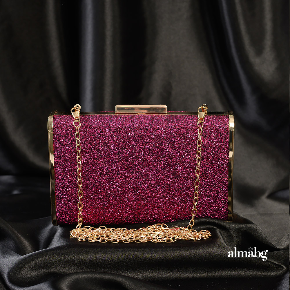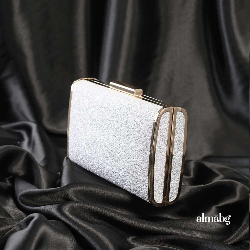 Стилна чанта клъч с фин блясък. Перфектен избор за вечерна чанта или просто за следобедна разходка. Дълга и къса дръжка верижка.